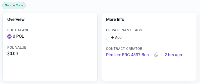 You can identify if your address is a Picnic address by looking it up on Polyscan , the CONTRACT CREATOR will be Pimlico: ERC-4337 Bundler ...
